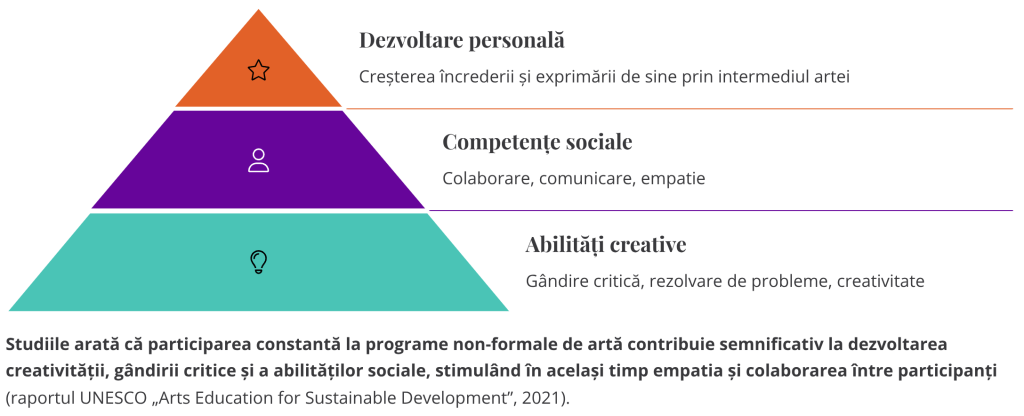 Program orientat către creșterea accesului la educație non-formală și dezvoltarea abilităților socio-emoționale și creative prin mijloace artistice.